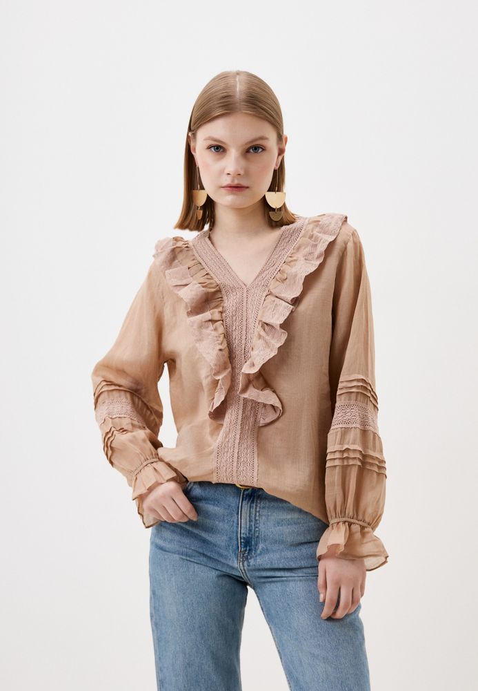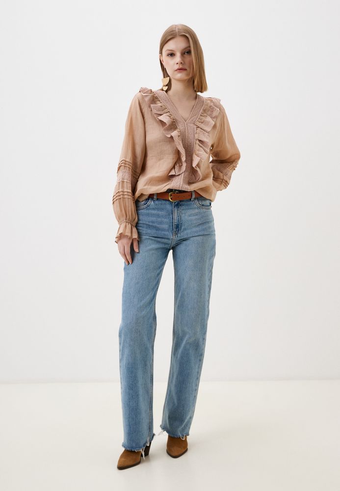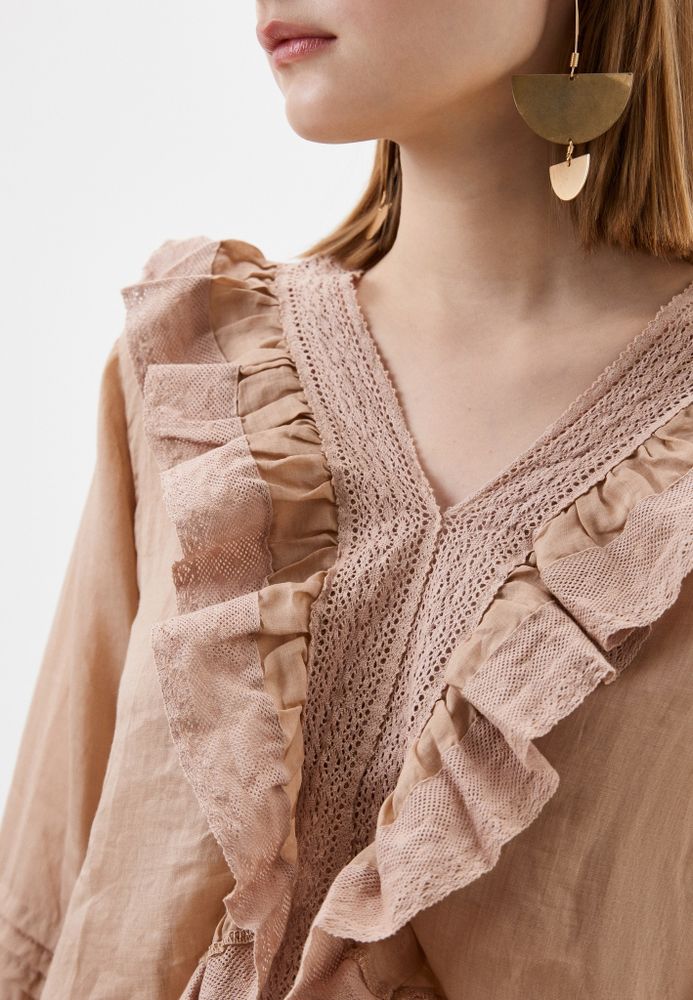 Легкая блузка из натурального льна с вышивкой и рюшами.