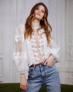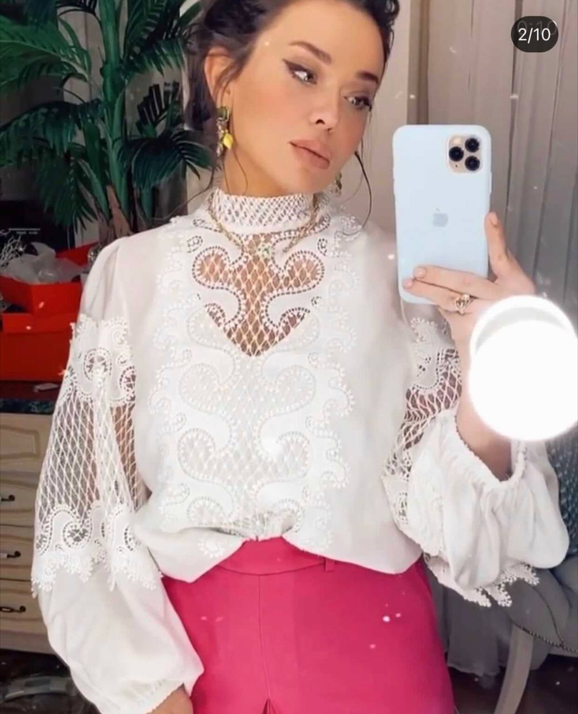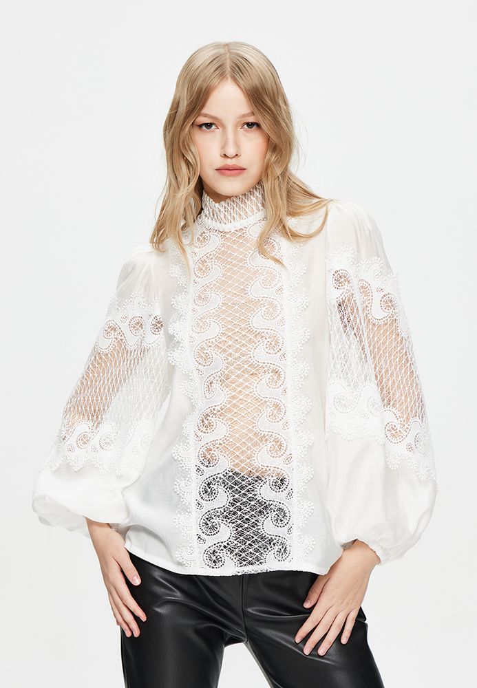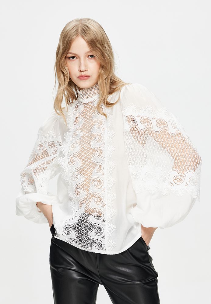 Блуза выполненная из приятной к телу вискозы с оригинальным шитьем спереди и на объемных рукавах.