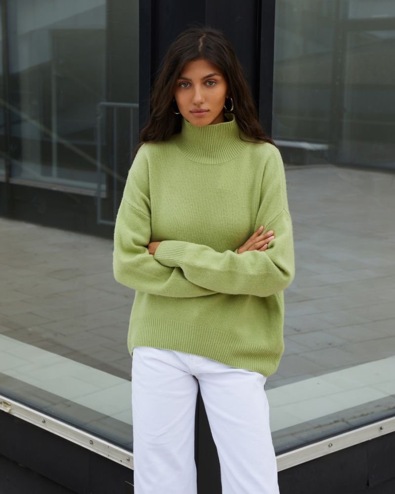 Джемпер кашемировый, с высоким горлом, кислотной расцветки.