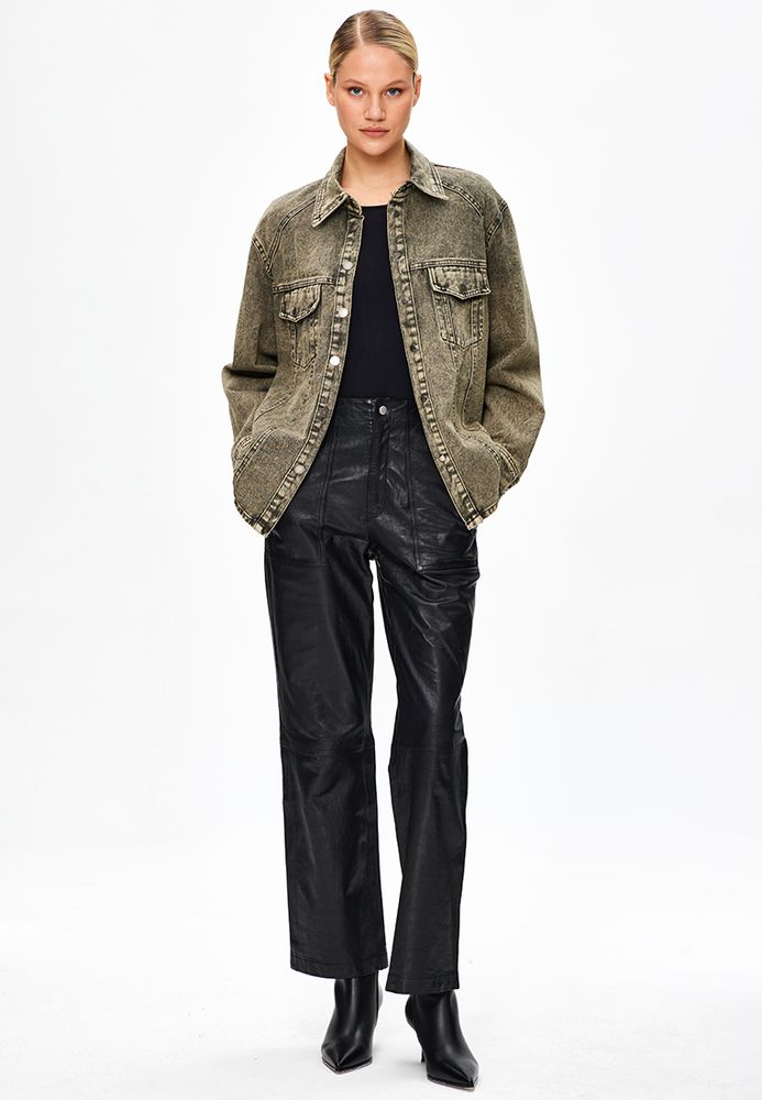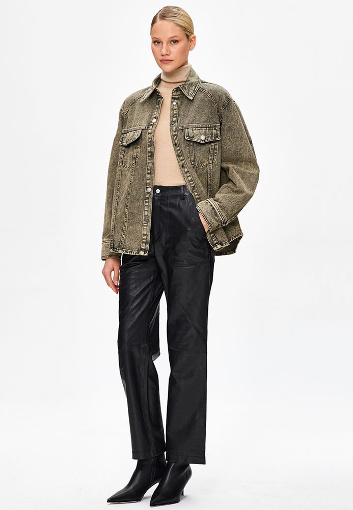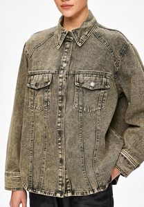 Рубашка из плотной джинсы с эффектом потертости, в двух цветах: серый и горчичный.
