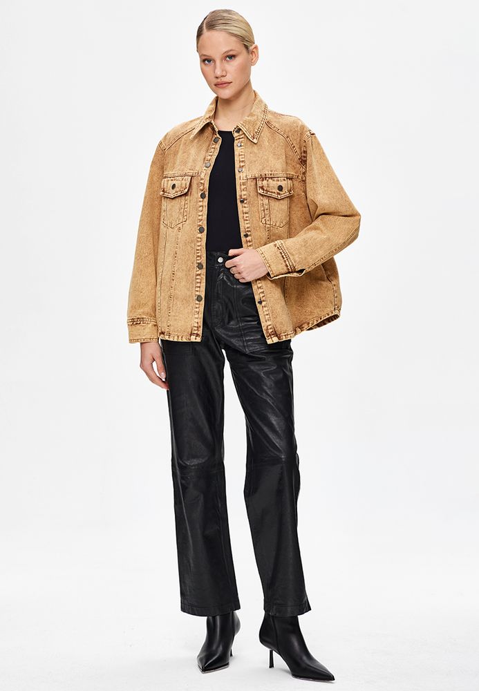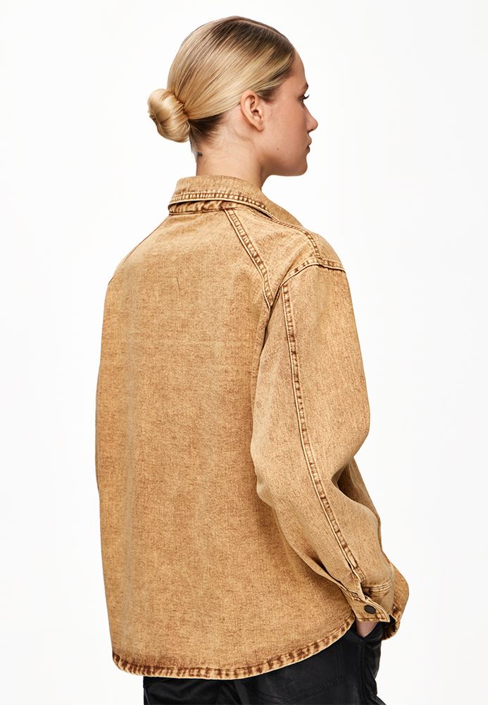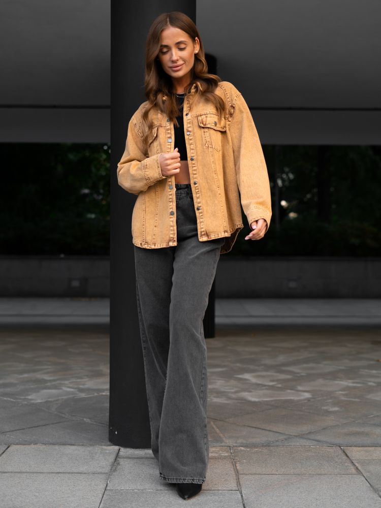 Рубашка из плотной джинсы с эффектом потертости, в двух цветах: серый и горчичный.