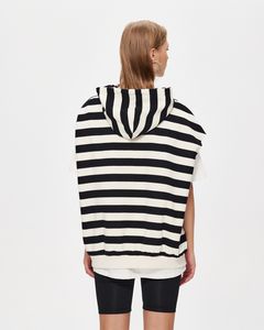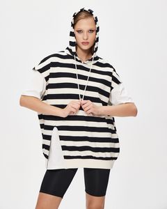 Комплект из белой хлопковой футболки и худи с коротким рукавом в полоску с капюшоном в стиле oversize, спереди разрез.