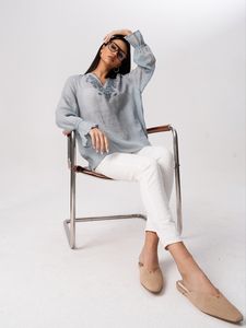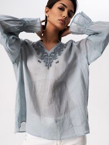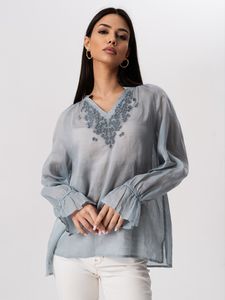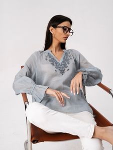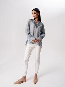 Блуза из натурального хлопка с вышивкой и V-образным вырезом горловины.