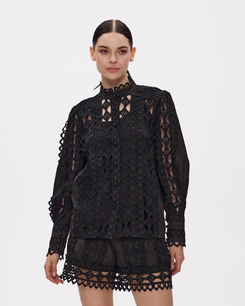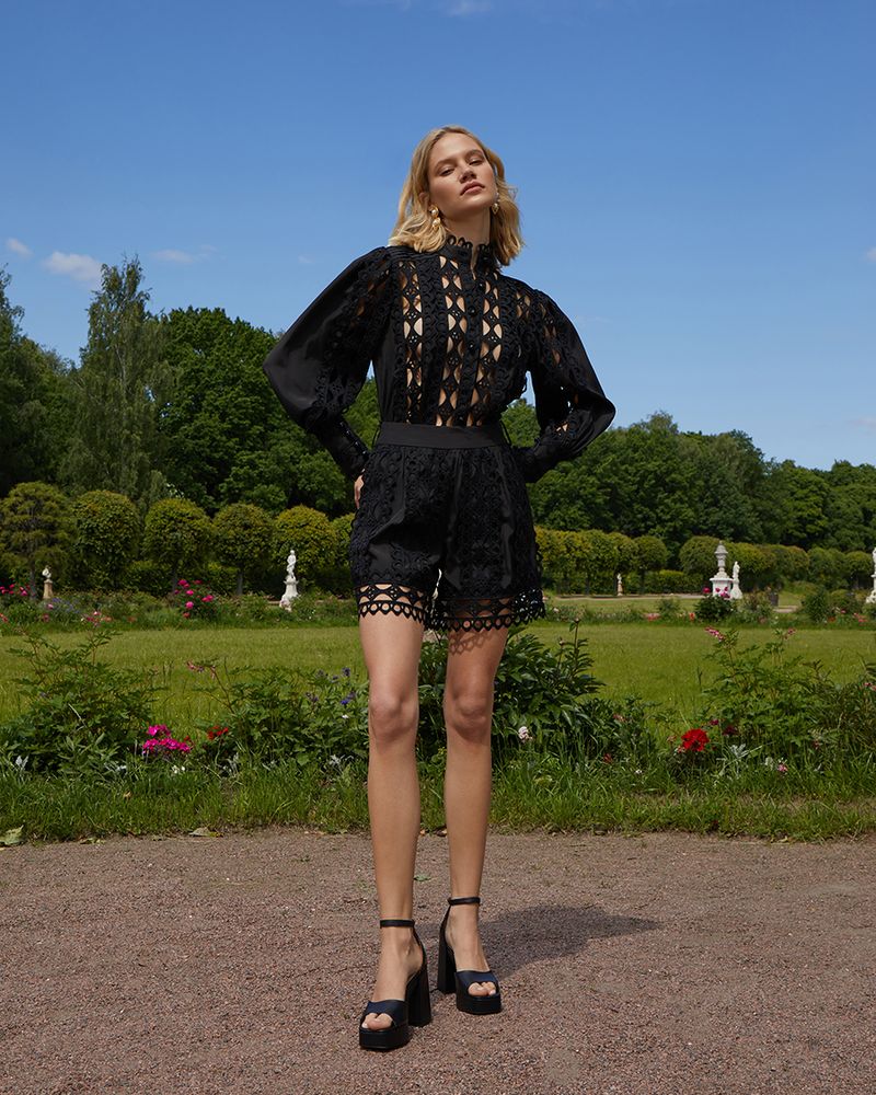 Костюм с кружевной блузой и шортами, в комплекте комбинация под блузку.