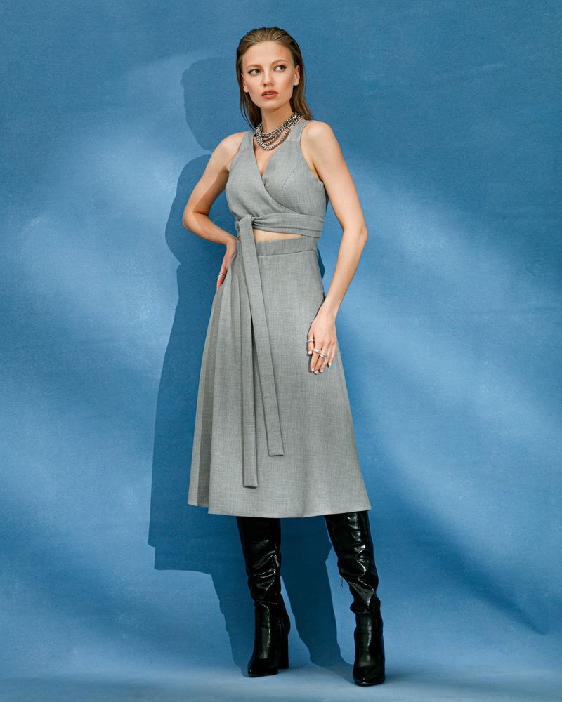 Платье сарафан на кожаных бретелях.