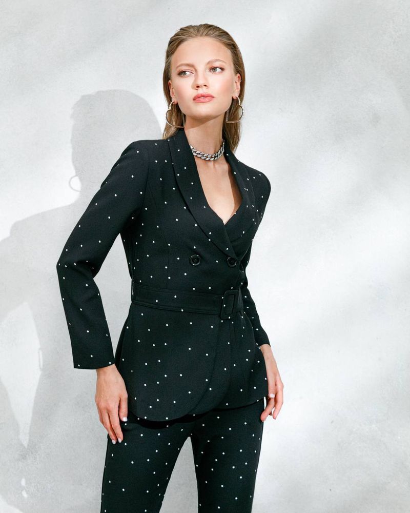 Костюм жакет и брюки, с принтом в мелкий горошек, на поясе. Мягкая приятная вискозная ткань.