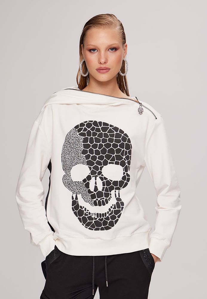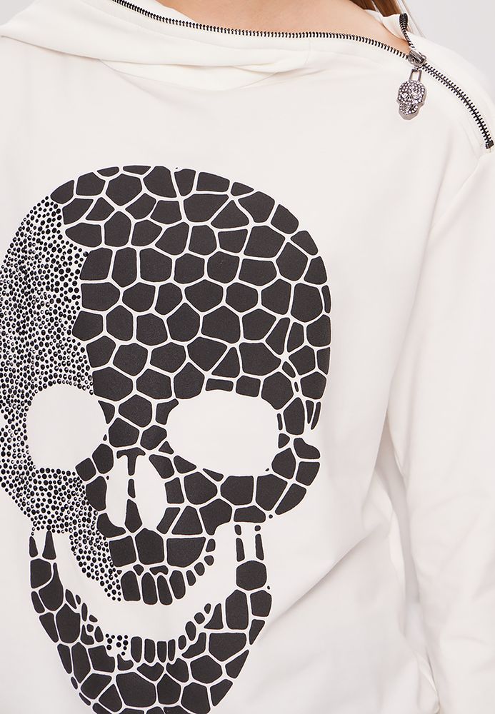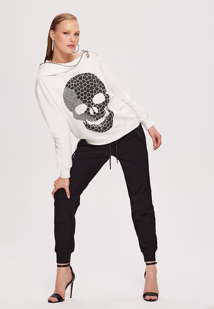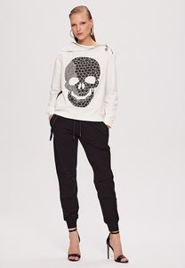 Костюм с толстовкой с длинным рукавом и капюшоном и брюками на завязках, с черепом со стразами.