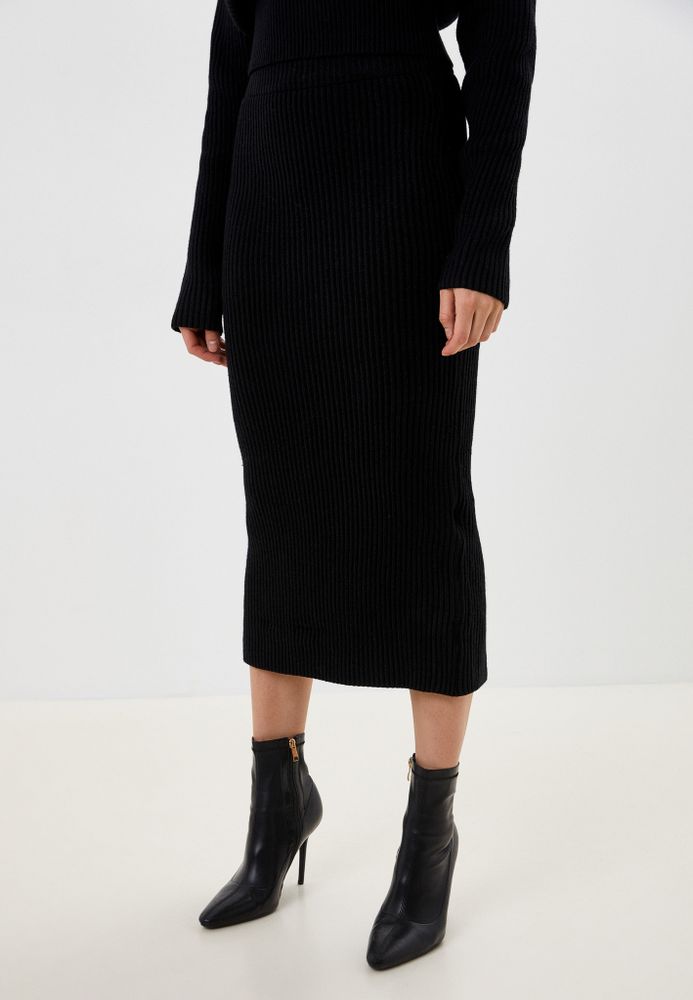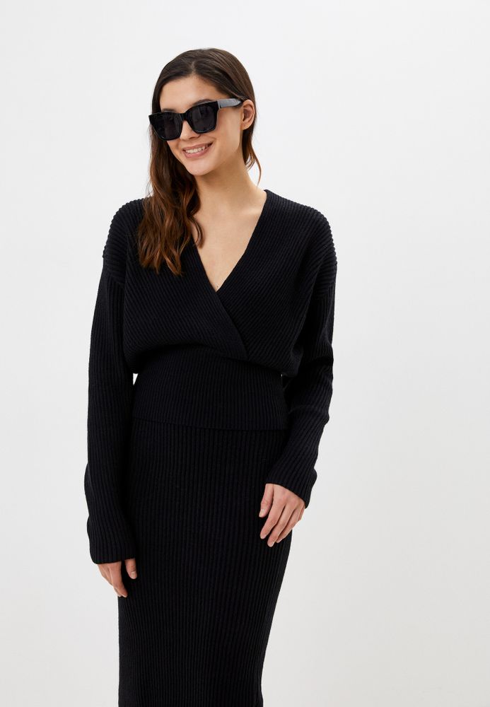 Трикотажный костюм премиум-качества сэлегантной юбкой и джемпером на запах с длинным рукавом.