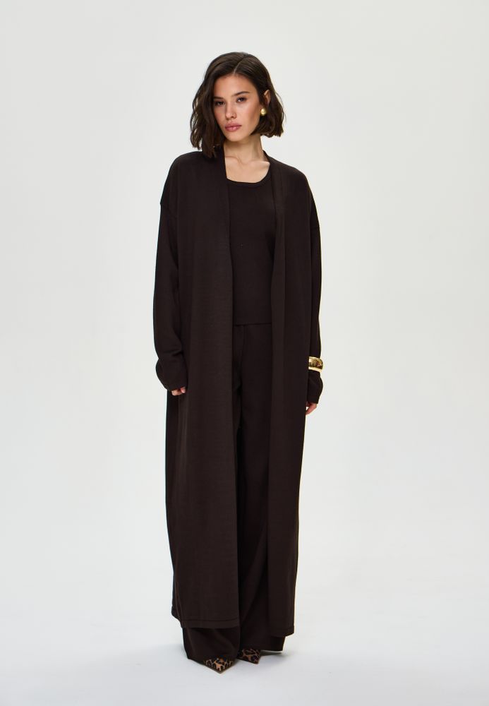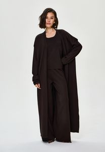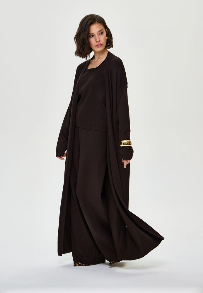 Костюм тройка состоящий из топа, свободных брюк на резинке, и кардигана, в комплекте идет тонкий поясок в тон костюма, который можно повязать поверх кардигана и подчеркнуть талию. Идеальный готовый образ на теплую весну и лето. Состав ткани обеспечивает баланс между прочностью и комфортом. Вискоза обеспечивает мягкость, акрил придает способность сохранять форму даже после многократных стирок.