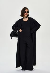 Костюм тройка состоящий из топа, свободных брюк на резинке, и кардигана, в комплекте идет тонкий поясок в тон костюма, который можно повязать поверх кардигана и подчеркнуть талию. Идеальный готовый образ на теплую весну и лето. Состав ткани обеспечивает баланс между прочностью и комфортом. Вискоза обеспечивает мягкость, акрил придает способность сохранять форму даже после многократных стирок.