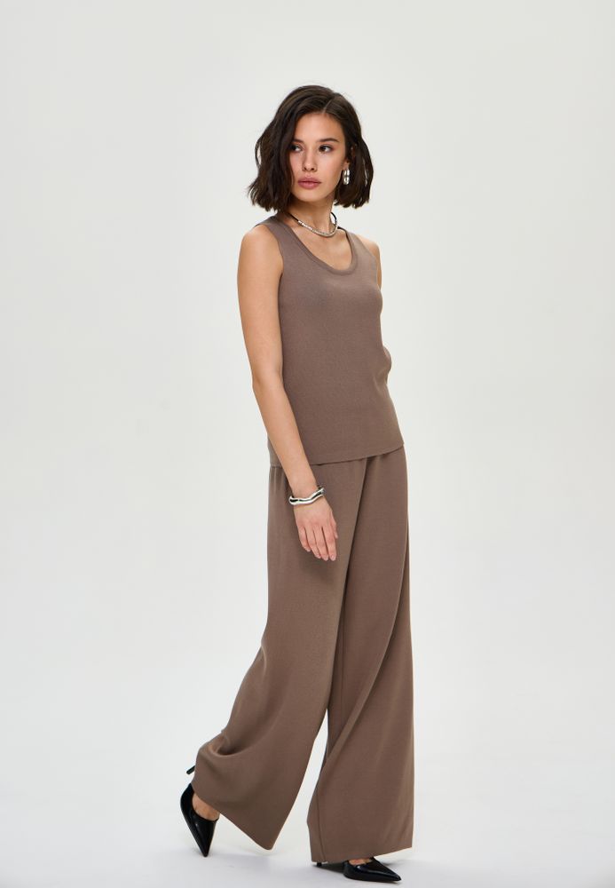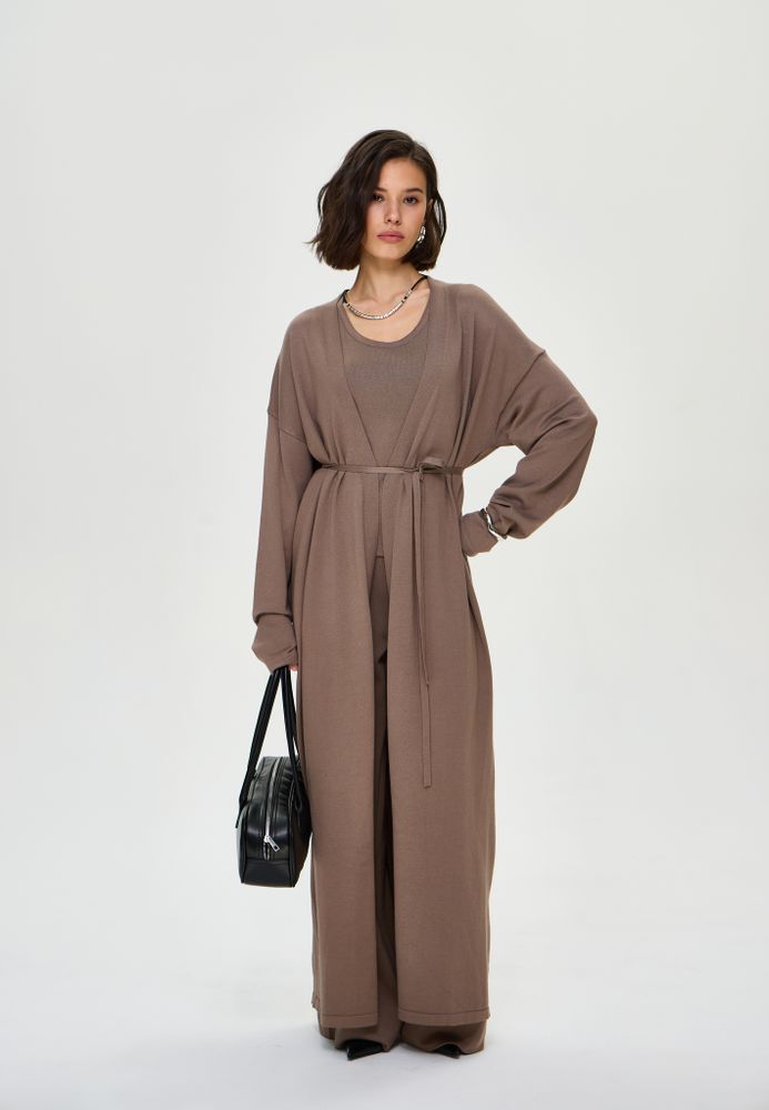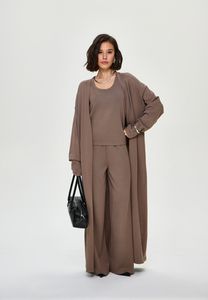 Костюм тройка состоящий из топа, свободных брюк на резинке, и кардигана, в комплекте идет тонкий поясок в тон костюма, который можно повязать поверх кардигана и подчеркнуть талию. Идеальный готовый образ на теплую весну и лето. Состав ткани обеспечивает баланс между прочностью и комфортом. Вискоза обеспечивает мягкость, акрил придает способность сохранять форму даже после многократных стирок.