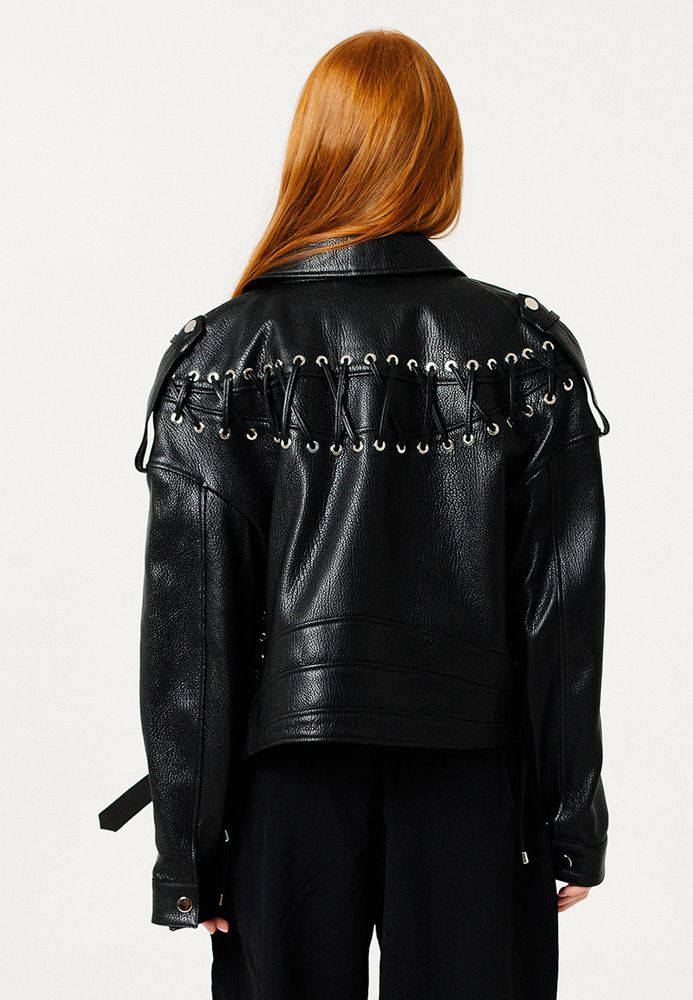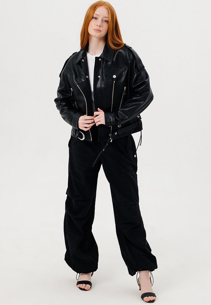 Куртка-бомбер в черном цвете из натуральной кожи премиум качества из кожи jumbo. Куртка выполнена в стиле oversize и дополнена шнуровкой сзади на спине и по бокам, а так же качественной фурнитурой и ремнем в тон внизу.