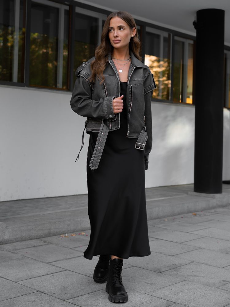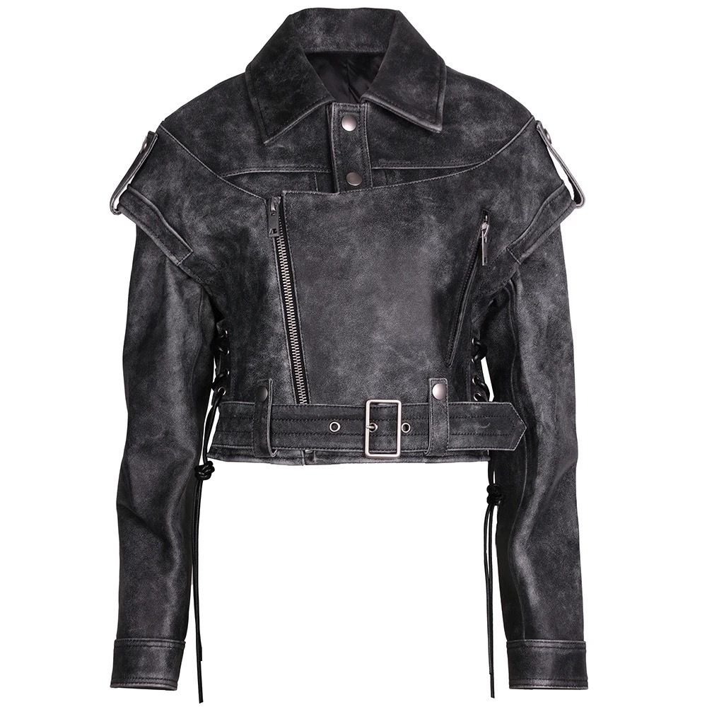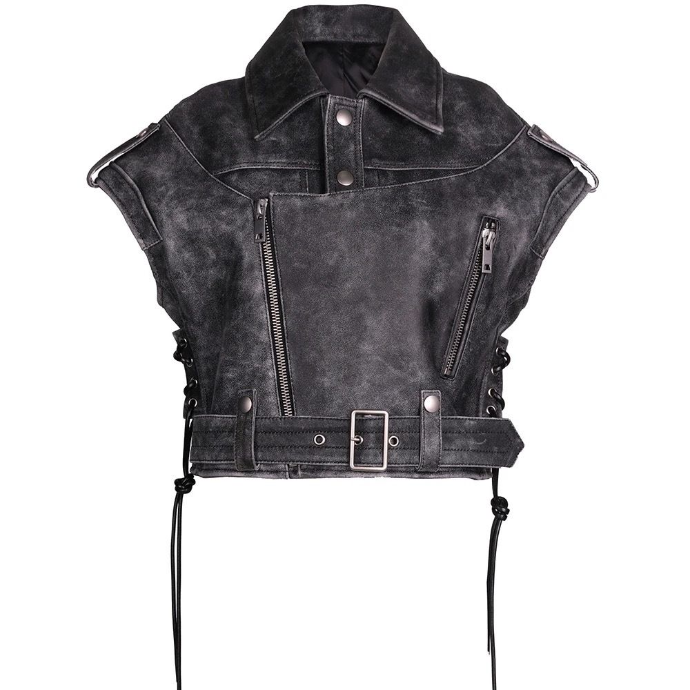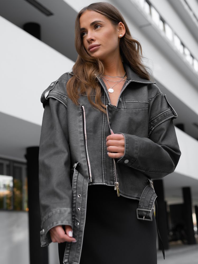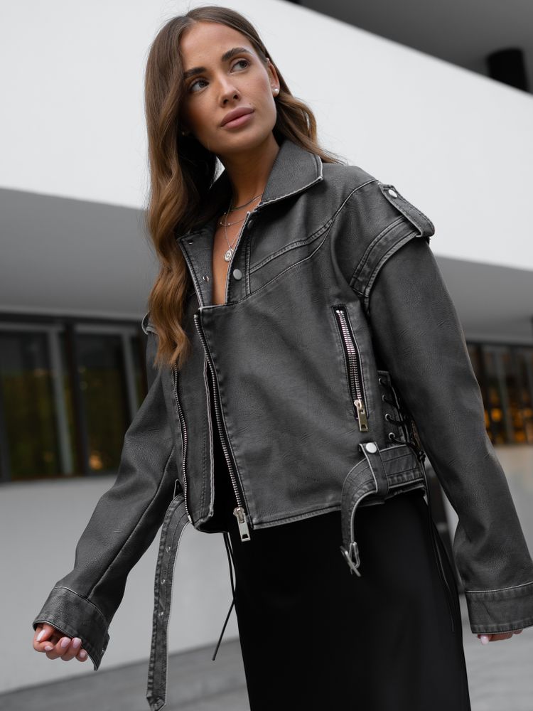 Куртка из экокожи со стильным эффектом состаренности в сером цвете. У куртки отстегиваются рукава, можно носить как жилет.