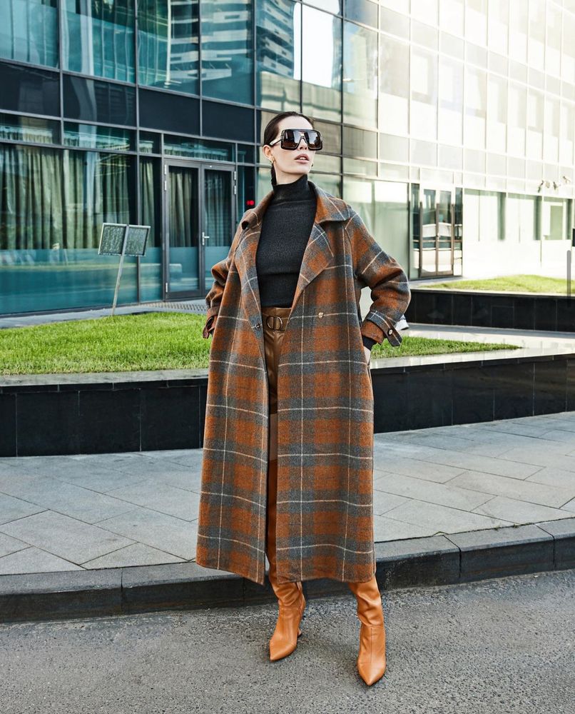 Пальто длинное в клетку