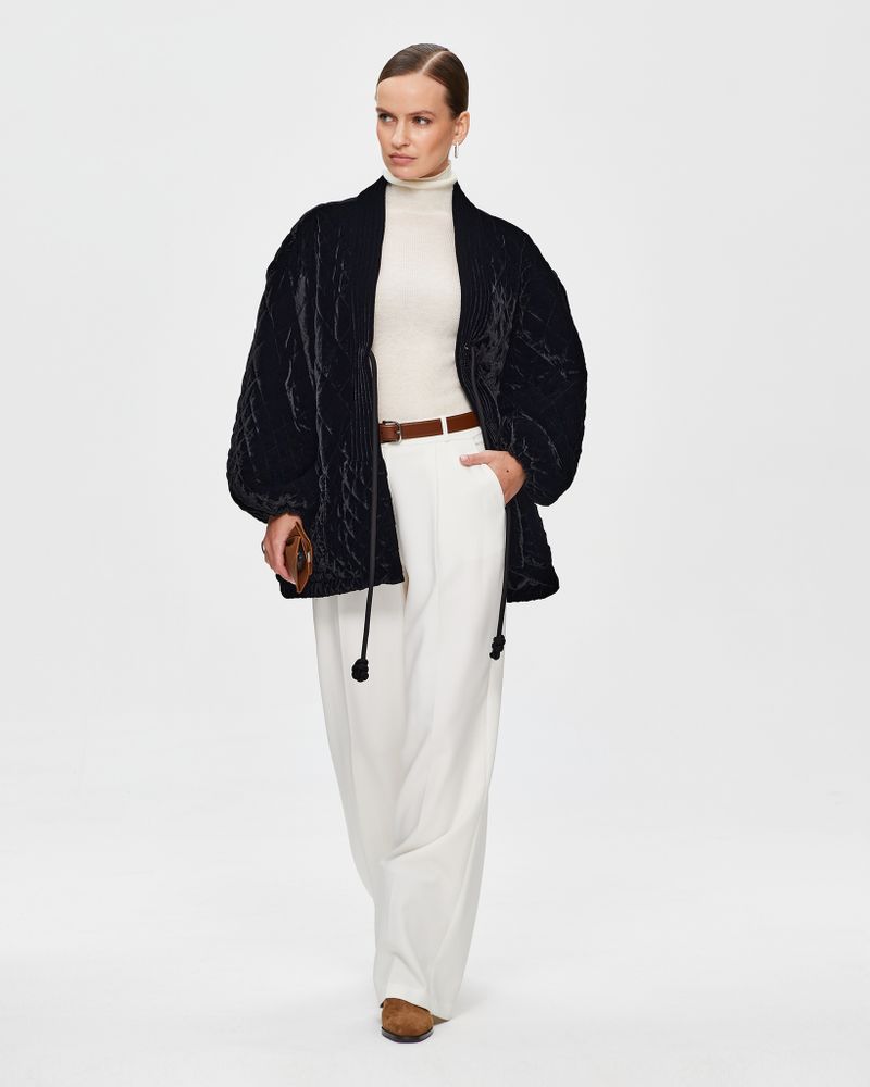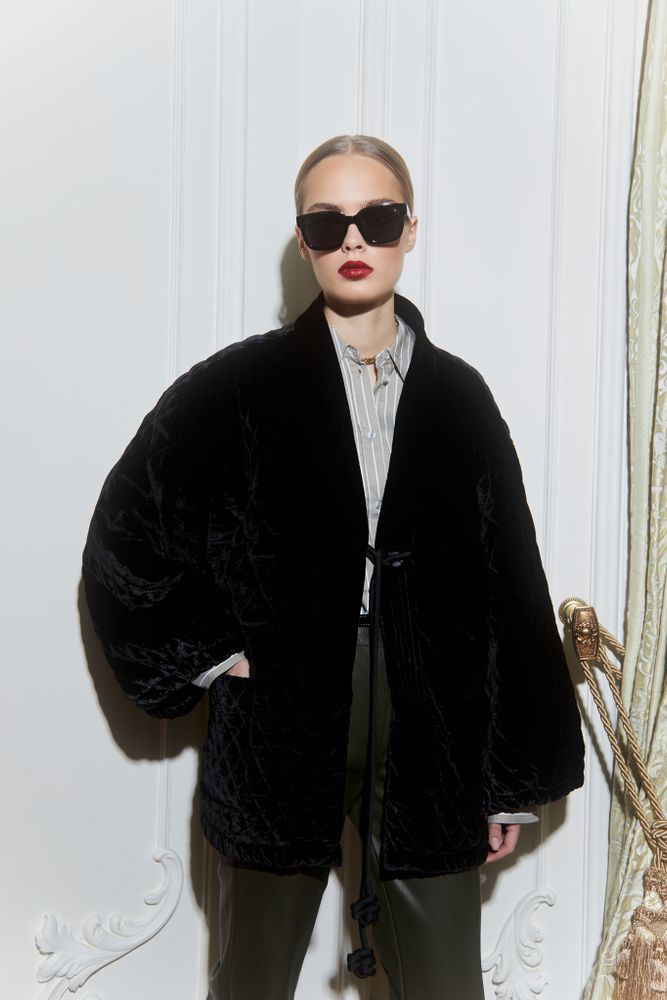 Пальто velvet silk с кисточками с добавлением шелка, свободный крой oversize позволяет надеть под пальто теплый кашемировый свитер, не сковывает движения.