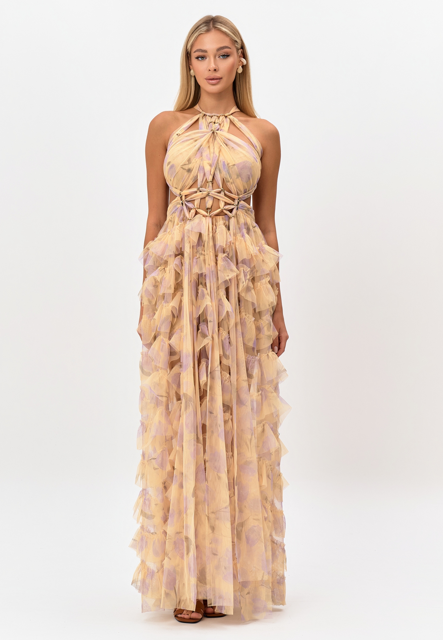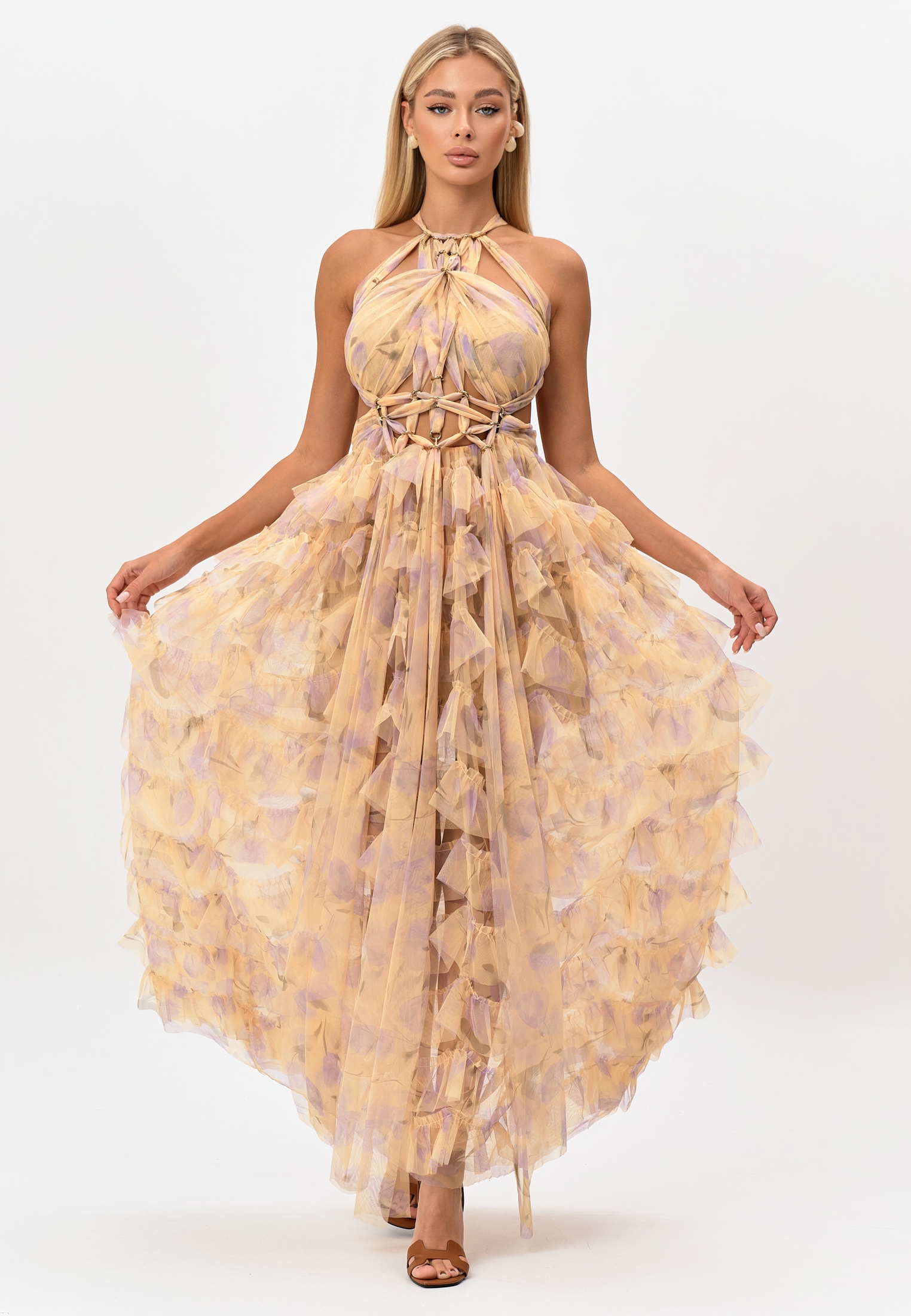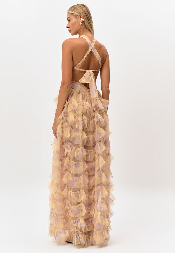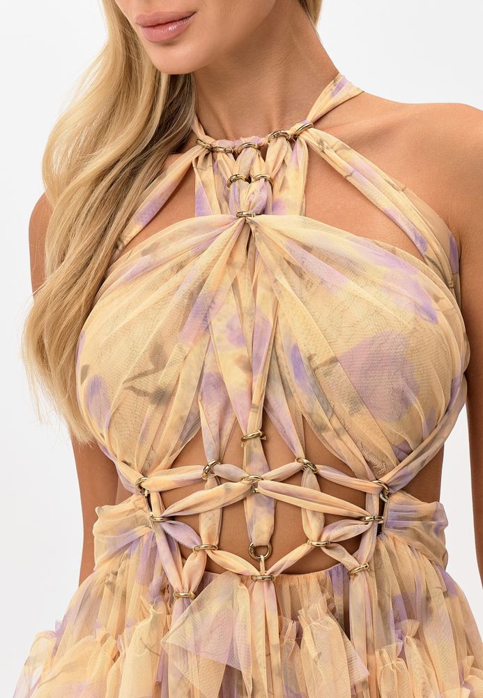 Платье из сетчатой ткани с оригинальным нежным цветочным принтом