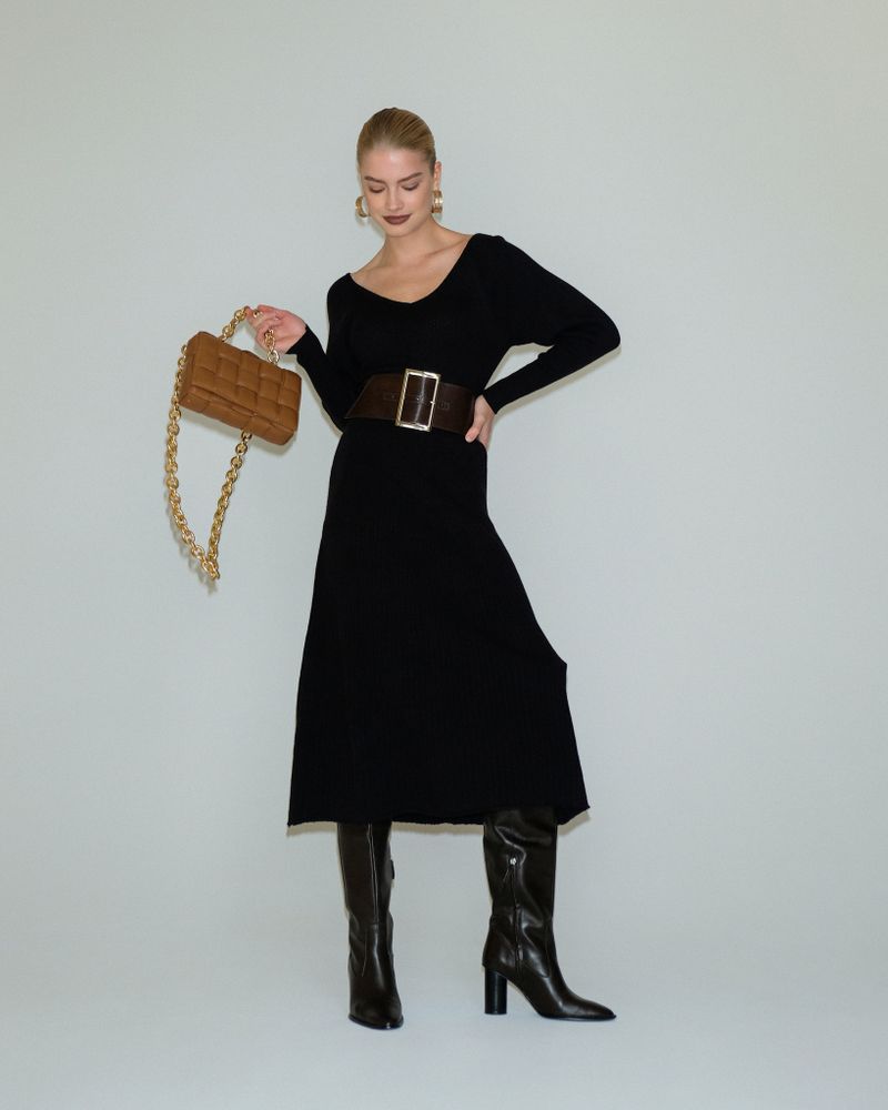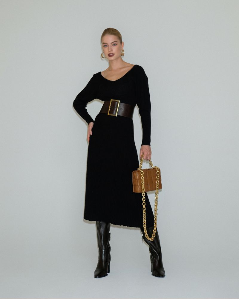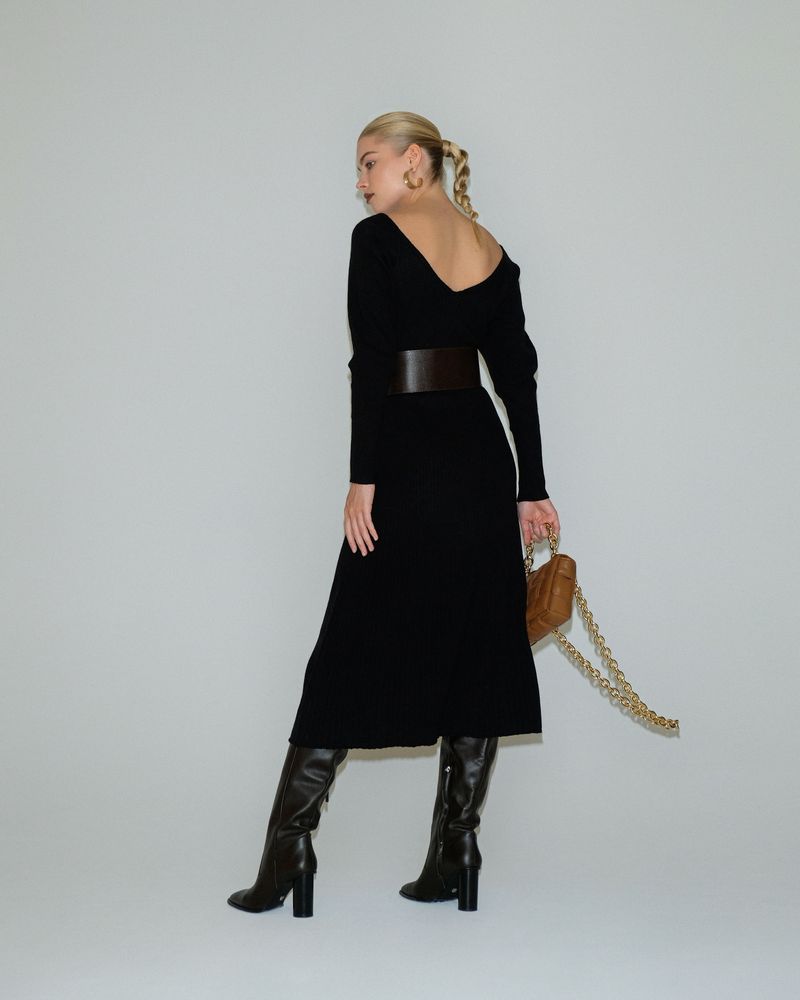 Роскошное платье из нежного трикотажа с эффектным глубоким вырезом спереди и сзади.