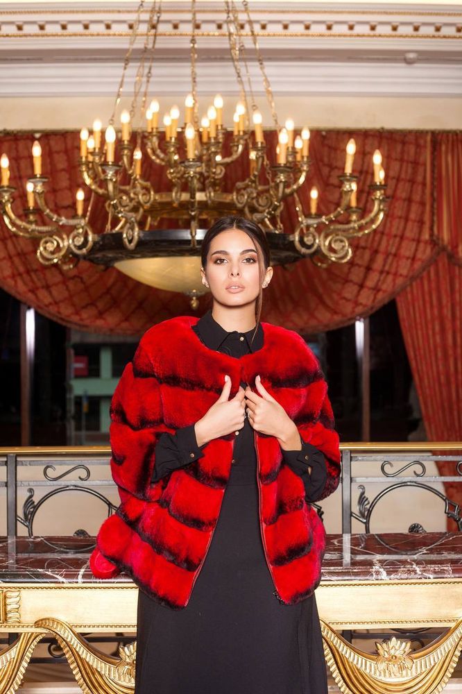 Укороченное меховое пончо из меха кролика рекс, с подкладом.