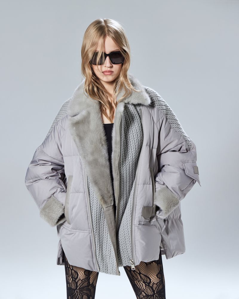 Пуховик на молнии с воротником из натуральной норки.