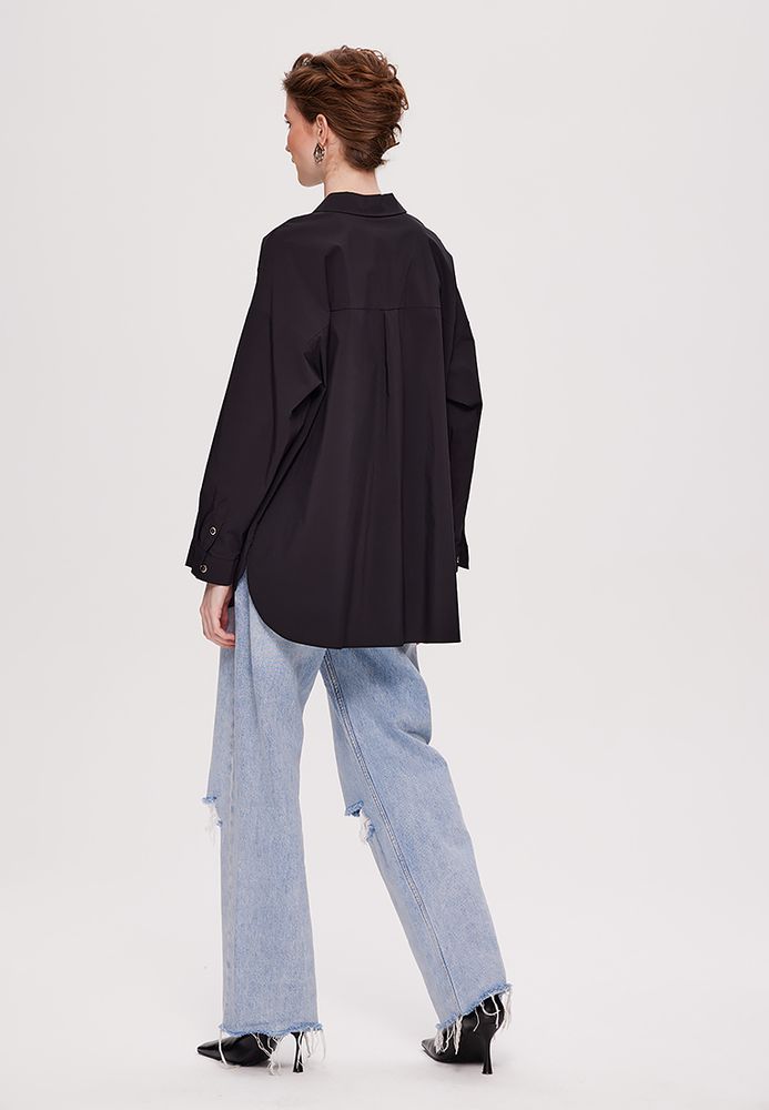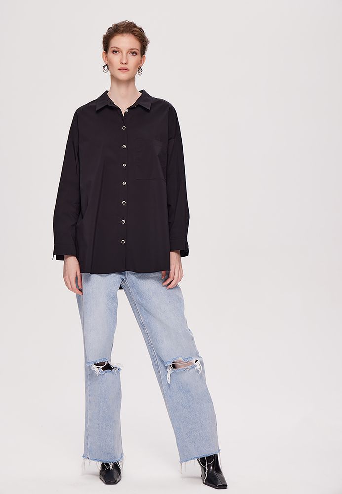 Хлопковая рубашка свободного кроя в двух базовых цветах: черный и белый.