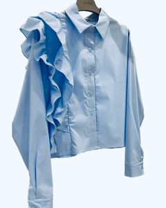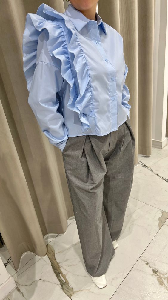 Женственная рубашка с воланами из натурального хлопка. Изготовлена из высококачественного материала, обеспечивая комфорт и удобство при носке. Ее оригинальный дизайн с оборкой на плече подчеркнет ваш индивидуальный стиль. Представлена в двух цветах: голубой и фуксия.