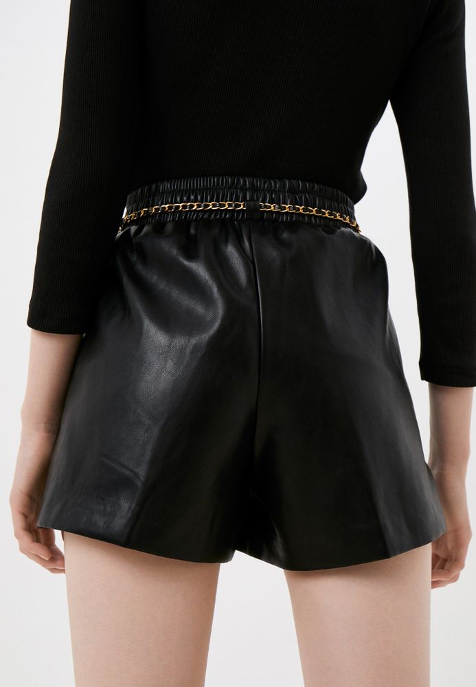 Шорты из экокожи на подкладе, с эффектной цепью-ремнем.