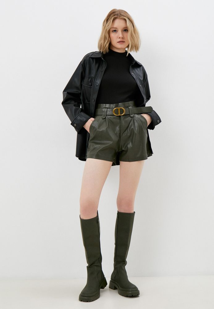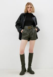 Шорты с высокой посадкой из экокожи с защипами, в комплекте ремень.