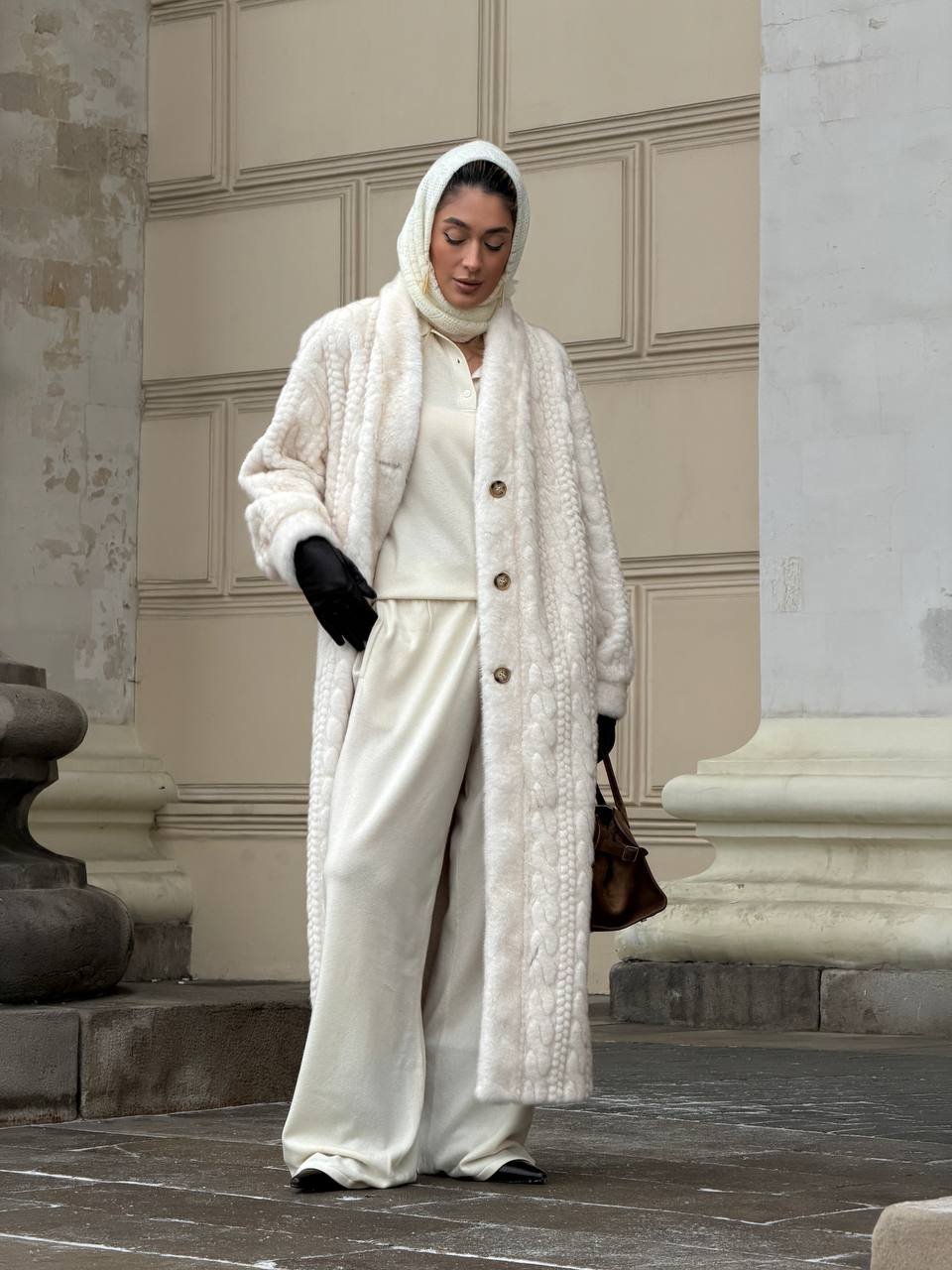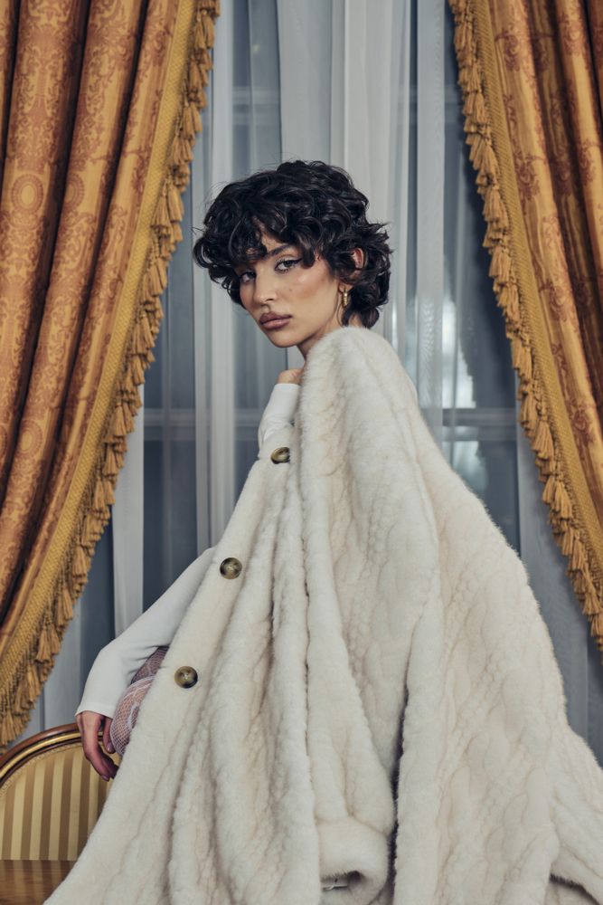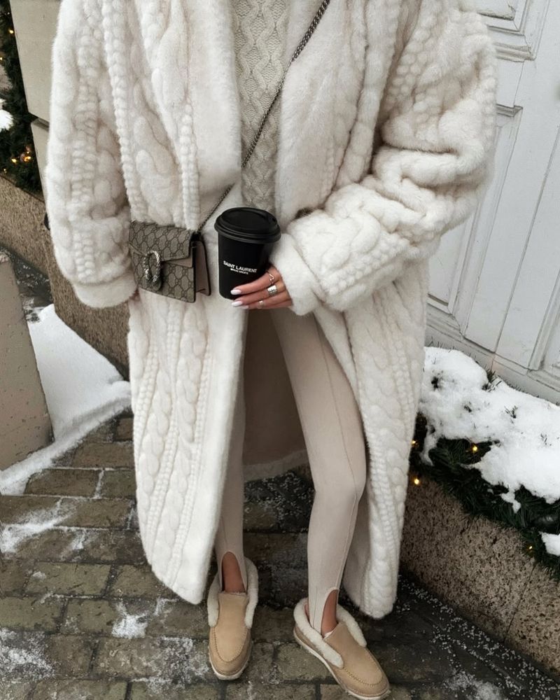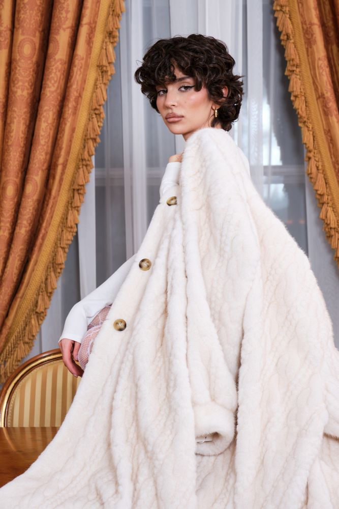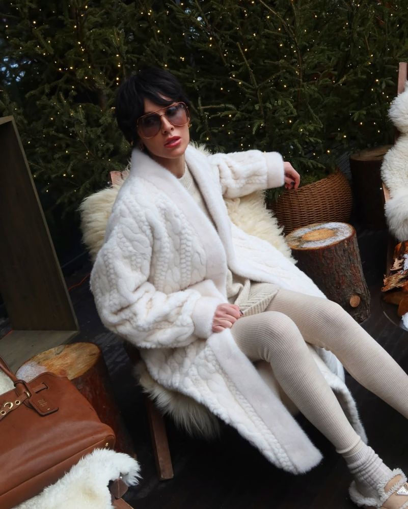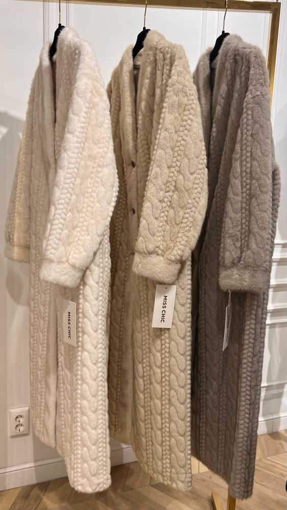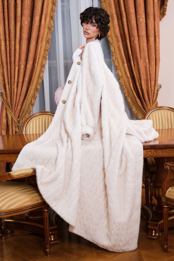 Роскошная шуба в длине макси 130 см. выполнена из шелковистого искусственного меха. Имеет неоднородный выкрас и блеск ворса, фактурная выделка под вязку. Основа ворса 100% вискоза. Имея все эти качества- ее просто не отличить от натуральной шубы из норки.