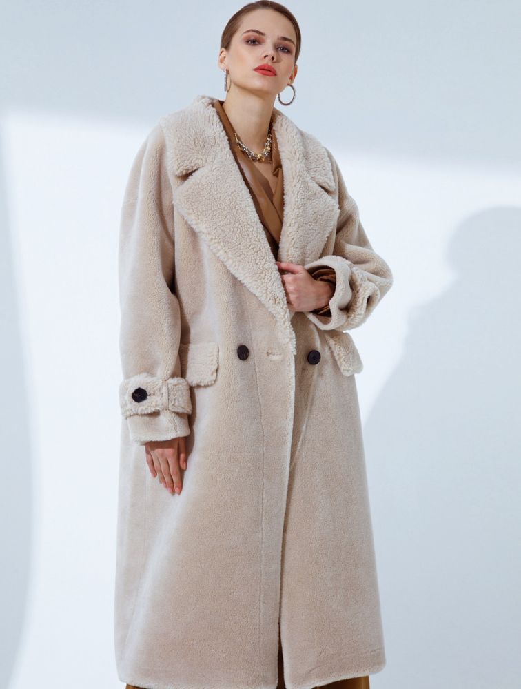 Шуба из натуральной овечьей шерсти на подкладе из вискозы. Длинный ворс. Зимняя модель.