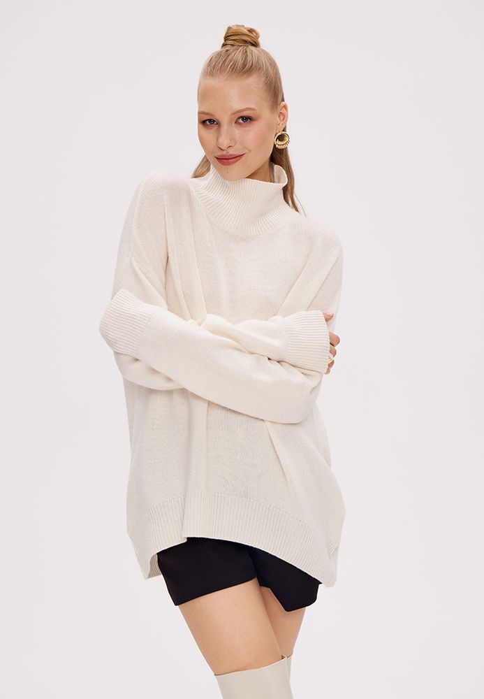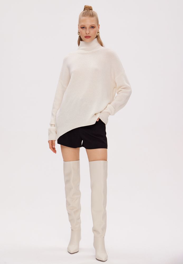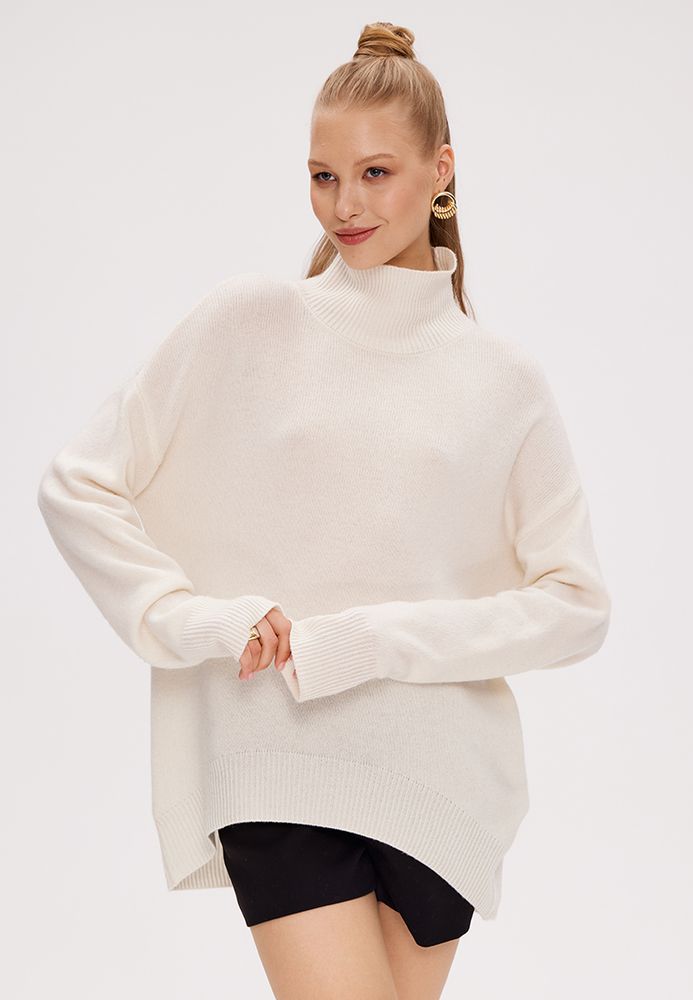 Кашемировый свитер с горлом с добавлением шерсти, удлиненный к низу, очень теплый, с добавлением кашемира премиум качества.