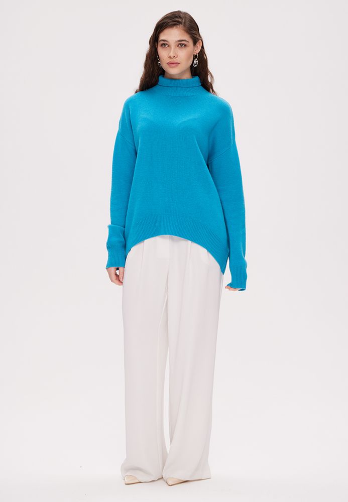 Кашемировый свитер с горлом с добавлением шерсти, удлиненный к низу, очень теплый, с добавлением кашемира премиум качества.