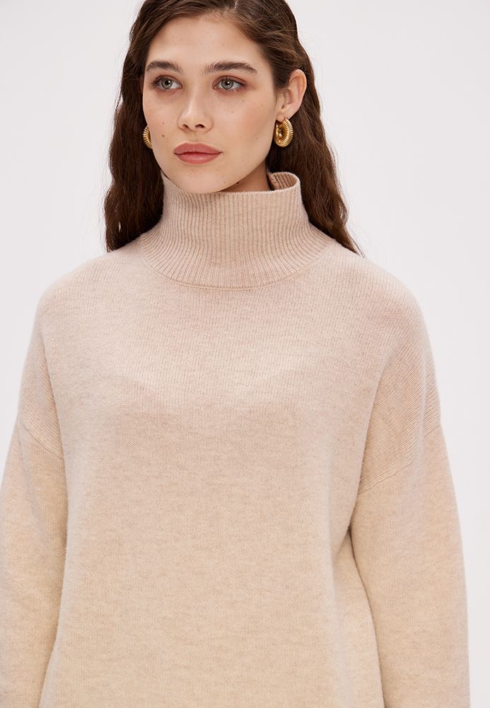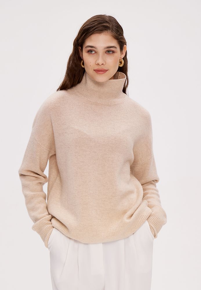 Кашемировый свитер с горлом с добавлением шерсти, удлиненный к низу, очень теплый, с добавлением кашемира премиум качества.