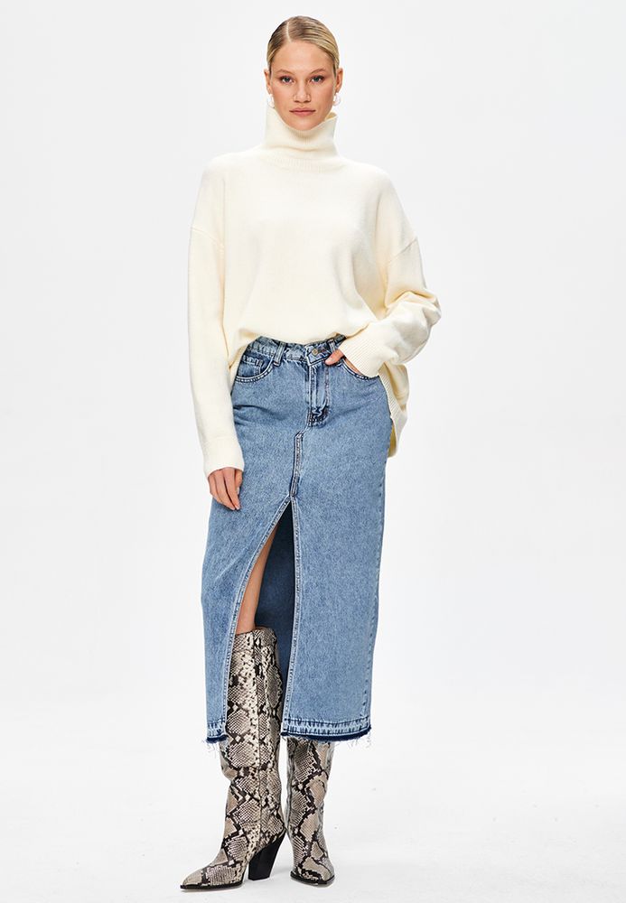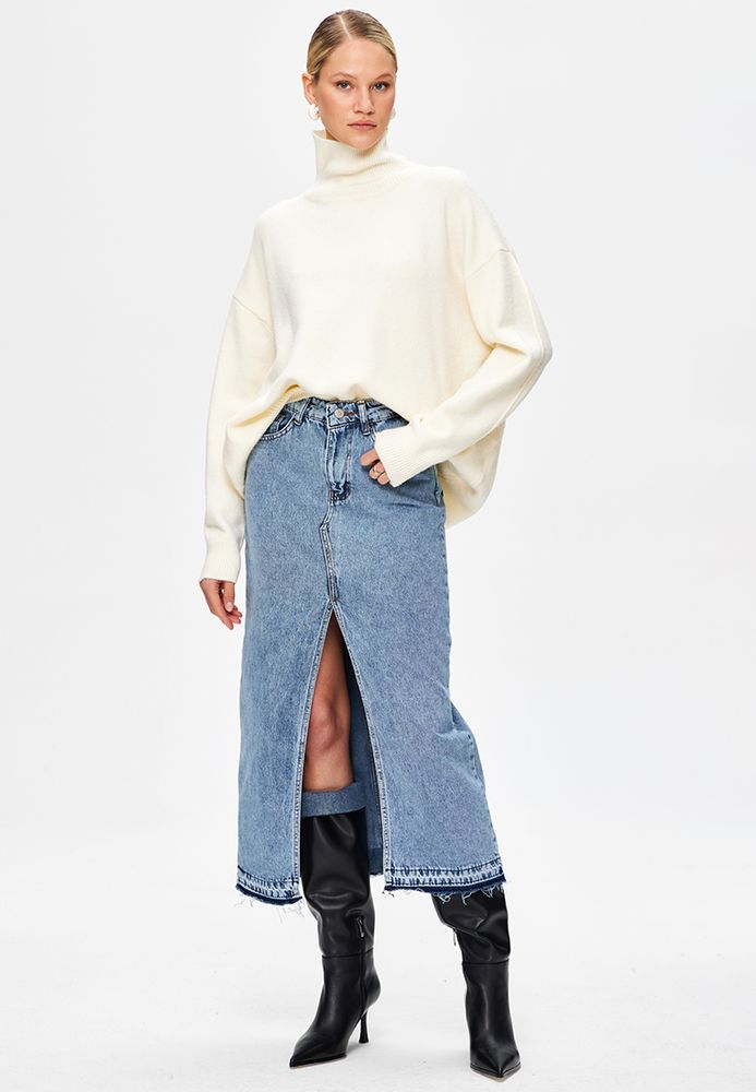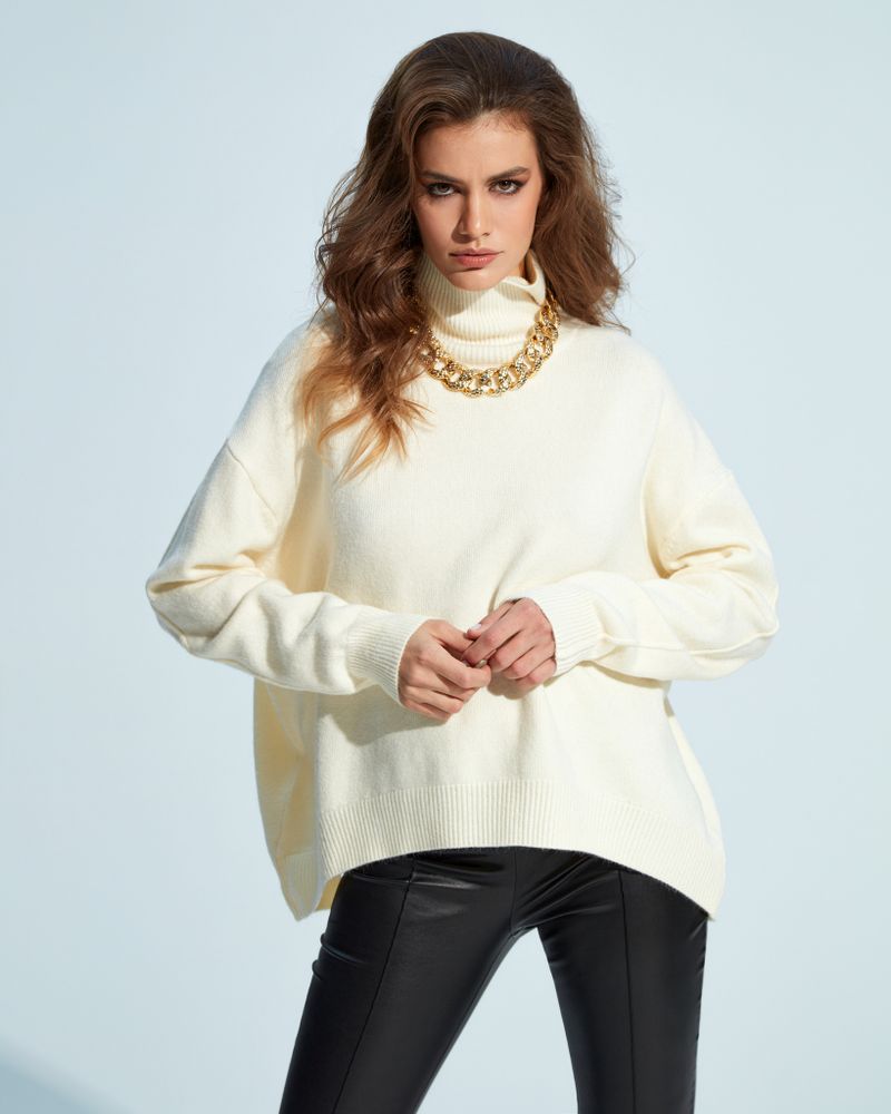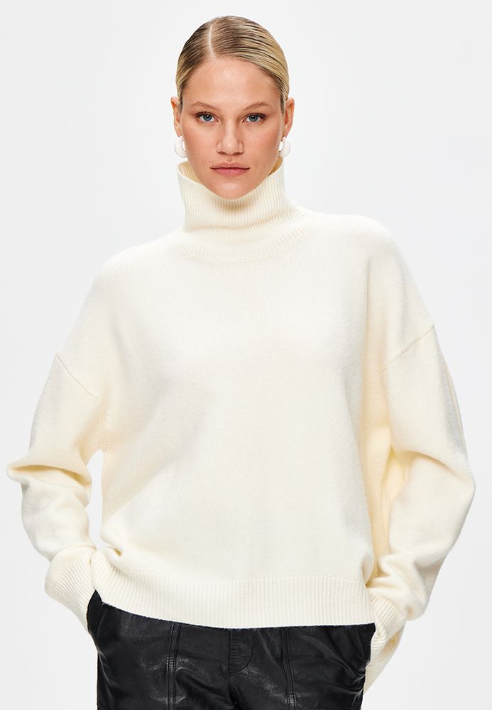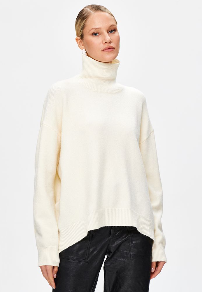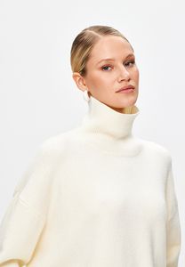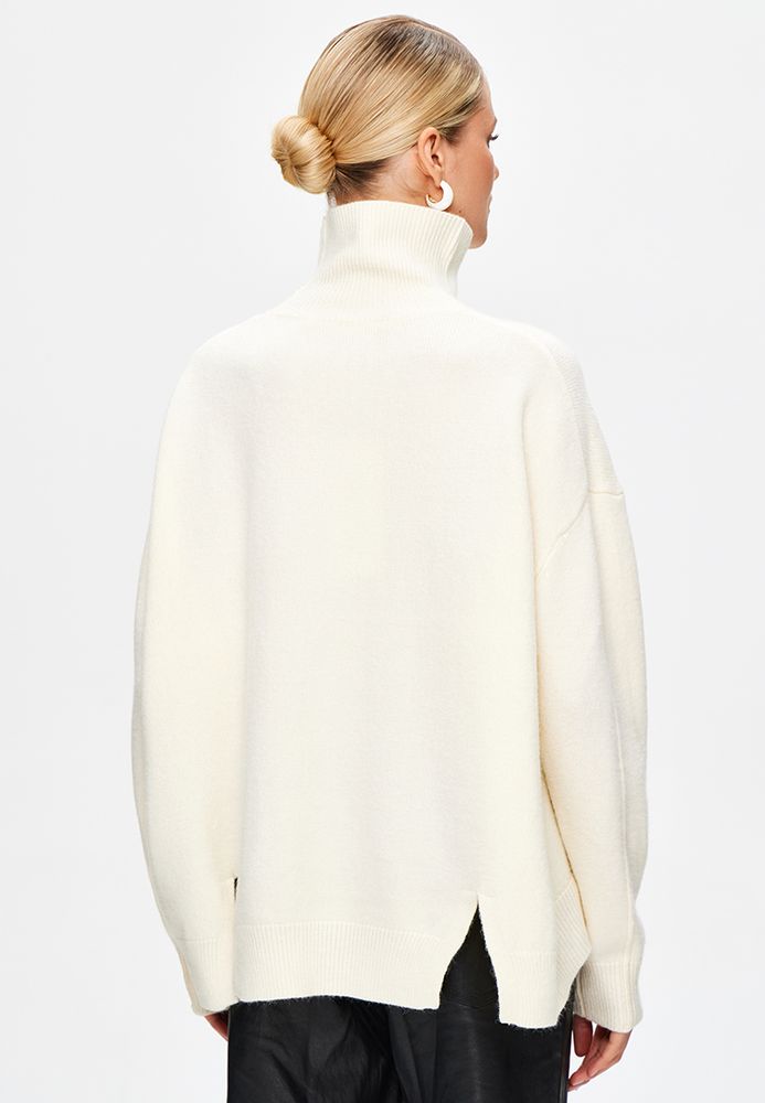Шерстяной свитер с горлом и разрезами сзади, с добавлением вискозы.