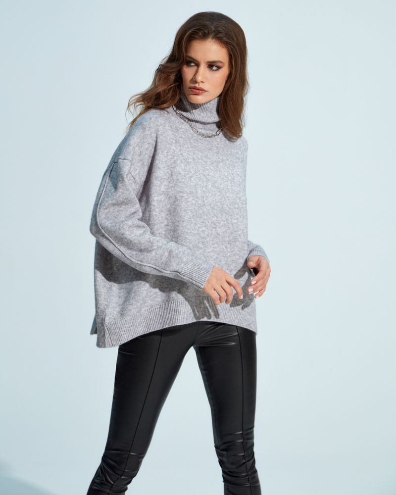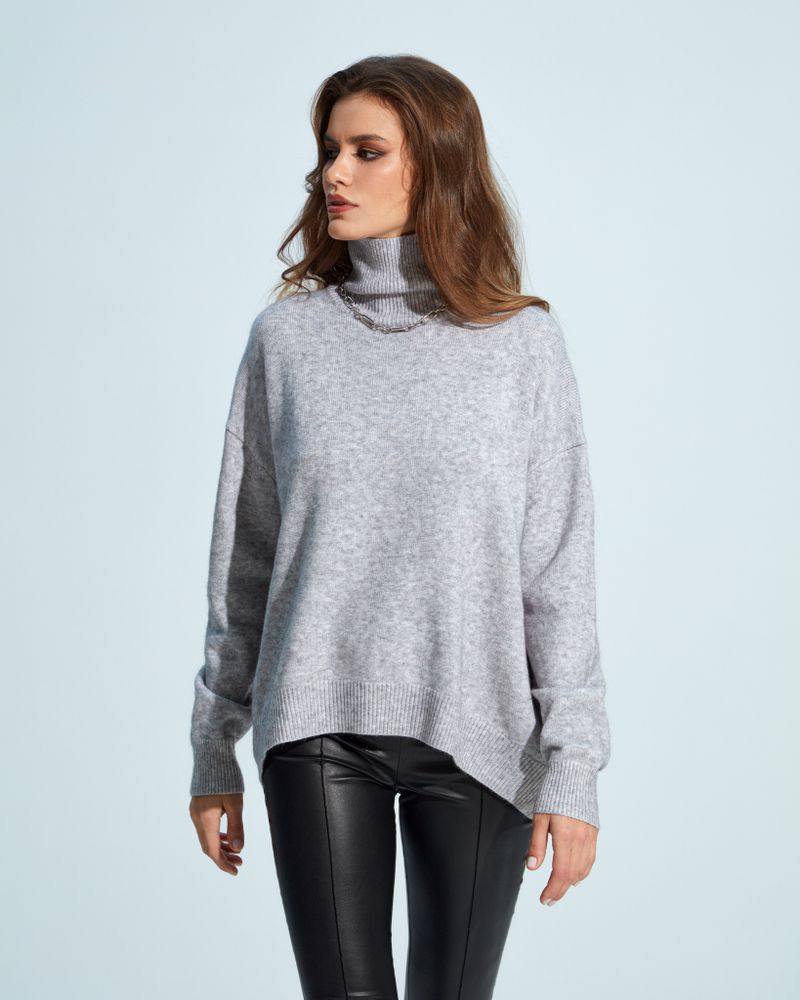 Шерстяной свитер с горлом и разрезами сзади, с добавлением вискозы.