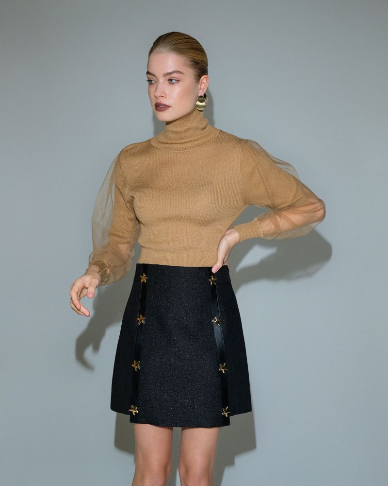 Водолазка шерстяная с шерстью и вискозой в составе, ультратонкая, износостойкая нарядная водолазка с фатином на рукавах.