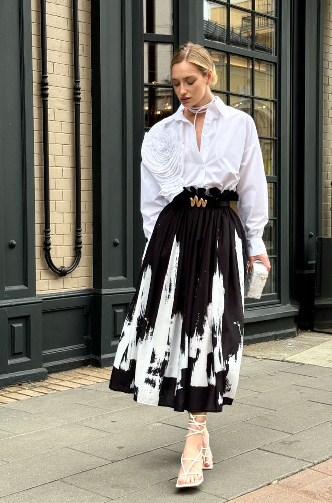 Юбка хлопковая с принтом на резинке с оборкой сверху и карманами - идеальный выбор для стильных и комфортных образов. Модель подчеркнет женственность, а эластичная талия обеспечит отличную посадку. Практичные карманы добавят функциональности вашему гардеробу.