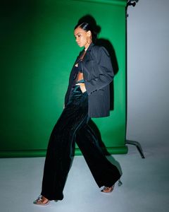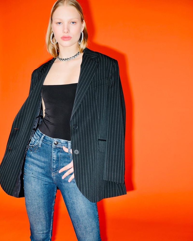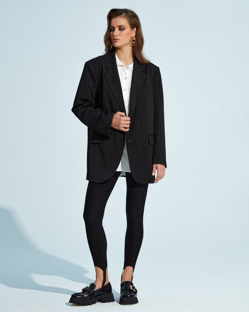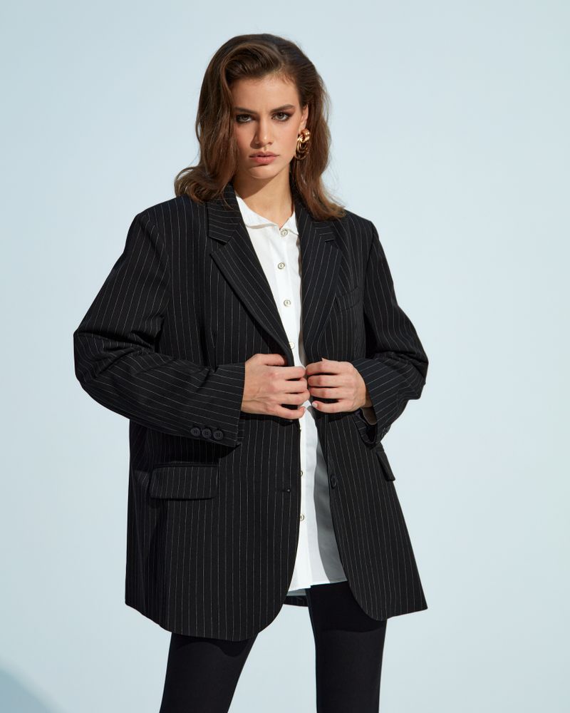 Жакет свободного кроя в полоску.