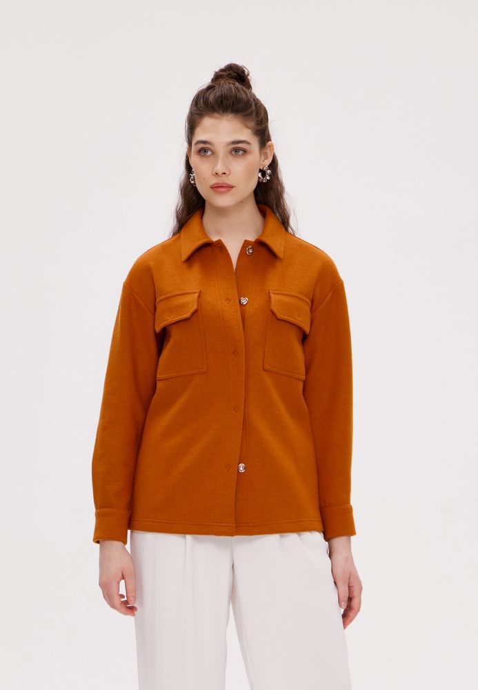 Жакет-рубашка с добавлением шерсти, накладные карманы.